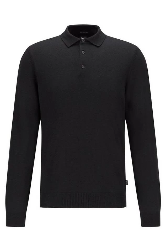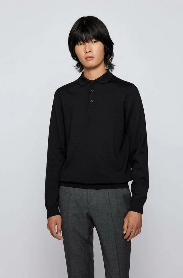 Dieser Pullover mit Polokragen ist aus Schurwollgarn für temperaturregulierenden Komfort gestrickt und hat eine normale Passform.