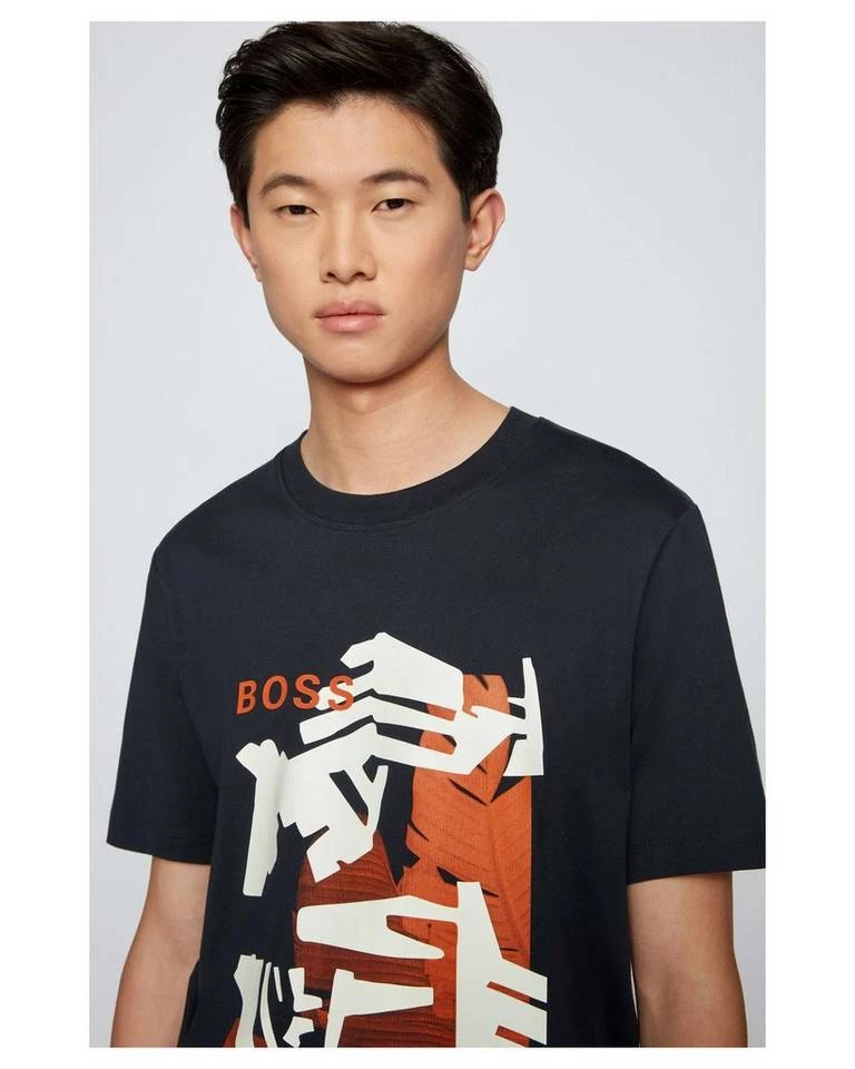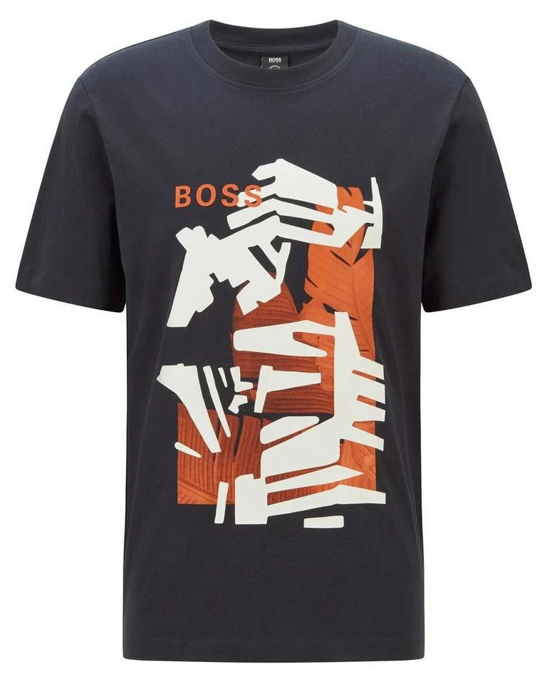 Das Tiburt T-Shirt von BOSS begeistert mit dem grafischen Print auf der Vorderseite und verleiht deinen Freizeitlooks einen spannenden Twist. Das Basic mit dem gewissen Etwas.