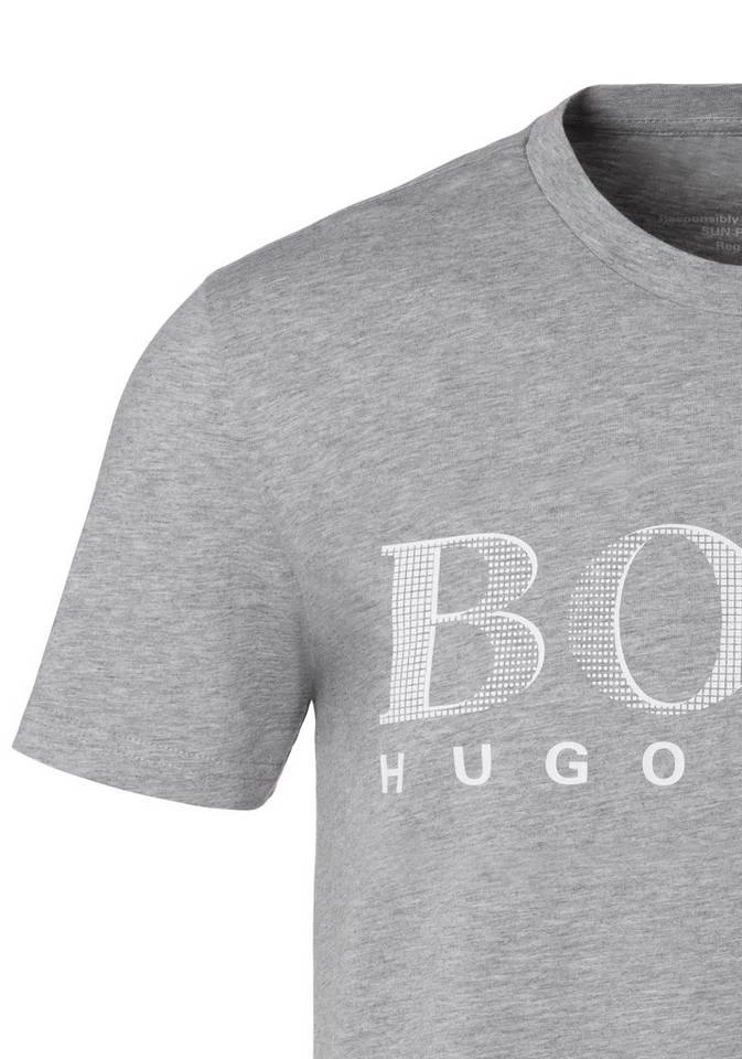 Entspannt und stilvoll durch den Sommer: Mit dem kurzärmeligen T-Shirt von Hugo Boss bist du für warme Tage und laue Nächte bestens gekleidet. Das im Regular fit geschnittene Rundhalsshirt lässt dich aber nicht nur gut aussehen, sondern schützt dich dank integriertem Sonnenschutz auch vor starker Sonneneinstrahlung. Durch das angenehm weiche und hautsympathische Baumwollmaterial trägt es sich zudem unglaublich bequem. Überzeugt? Dann bestell dir gleich das T-Shirt von Hugo Boss!
