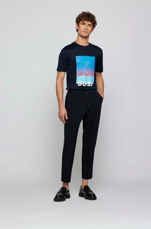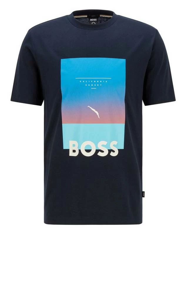 " Charakteristisches BOSS T-Shirt mit schmaler Passform. Das Herren-Shirt aus merzerisierter Baumwolle ist auf der Brust mit einem Foto-Artwork bedruckt. Für unsere RESPONSIBLE Produkte verwenden wir immer mindestens 60 % nachhaltigere Rohmaterialien. Mit dem Kauf dieses Produkts leisten Sie einen wichtigen Beitrag für die Zukunft Afrikas sowie den Schutz unserer Natur. "Cotton made in Africa" ist eine Initiative der Aid by Trade Foundation. Die Baumwolle wird ausschließlich durch Regen bewässert, sodass kein zusätzliches Wasser verbraucht wird. Die Initiative unterstützt kleine Baumwollbauern und setzt sich für die Gleichberechtigung der Geschlechter, faire Arbeitsbedingungen und den Schutz der Kinderrechte ein. Es werden keine genetisch veränderten Organismen eingesetzt und alle Teilnehmenden erhalten Schulungen zu klimafreundlichen Anbaumethoden und biologischer Landwirtschaft. Slim Fit / Schmale Passform Kurze Ärmel "