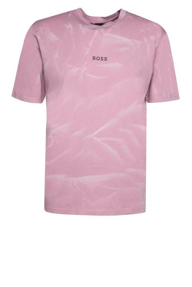 Charaktervolles BOSS T-Shirt mit gerader Passform. Das Herren-Shirt mit Rundhalsausschnitt ist aus besonders softem Baumwoll-Jersey gefertigt und für ein einzigartiges Muster mit Bleich-Spray stückgefärbt. Ein gummierter BOSS Logo-Print auf der Brust rundet den Style dezent ab. Herren-T-Shirt von BOSS Menswear , Regular Fit Ausschnitt: Rundhalsausschnitt Kurze Ärmel Standardlänge