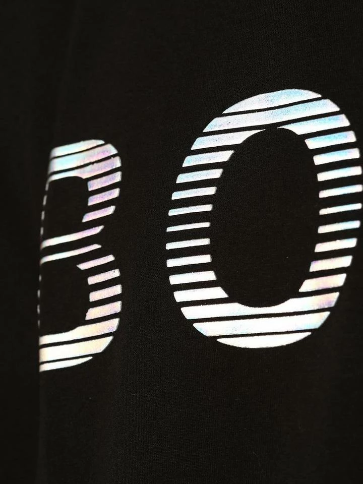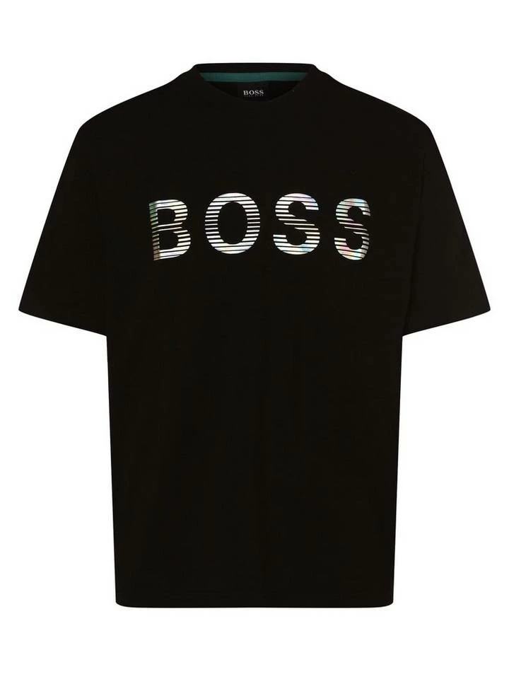 Cooler Blickfang: Das Branding des BOSS Casual T-Shirts Tanek_ZA zeigt sich als Stripes-Print im irisierenden Metallic-Look.
