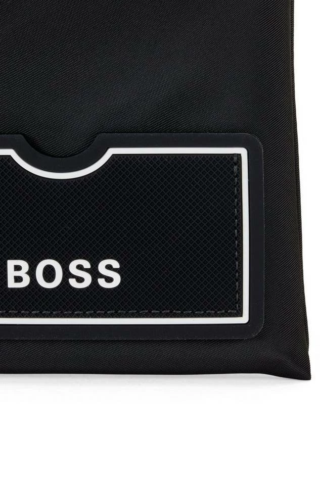 Zeitgemäßer BOSS Brustbeutel. Das Herren-Accessoire ist aus einem recycelten Material mit feiner Struktur gefertigt. Kontrastfarbene Paspeln und ein passendes Logo auf der Vordertasche runden das Design ab. Die Vordertasche dient als Kartenetui, der Riemen kann abgenommen oder individuell angepasst werden. Bei der Herstellung unserer Produkte sind wir immer auf der Suche nach nachhaltigeren Lösungen. Maße: Länge: 12,0 cm Höhe: 18,0 cm Schließt mit Reißverschluss Vier Kartenfächer Details in gebürstetem Blaugrau Verpackung: Schutzbeutel