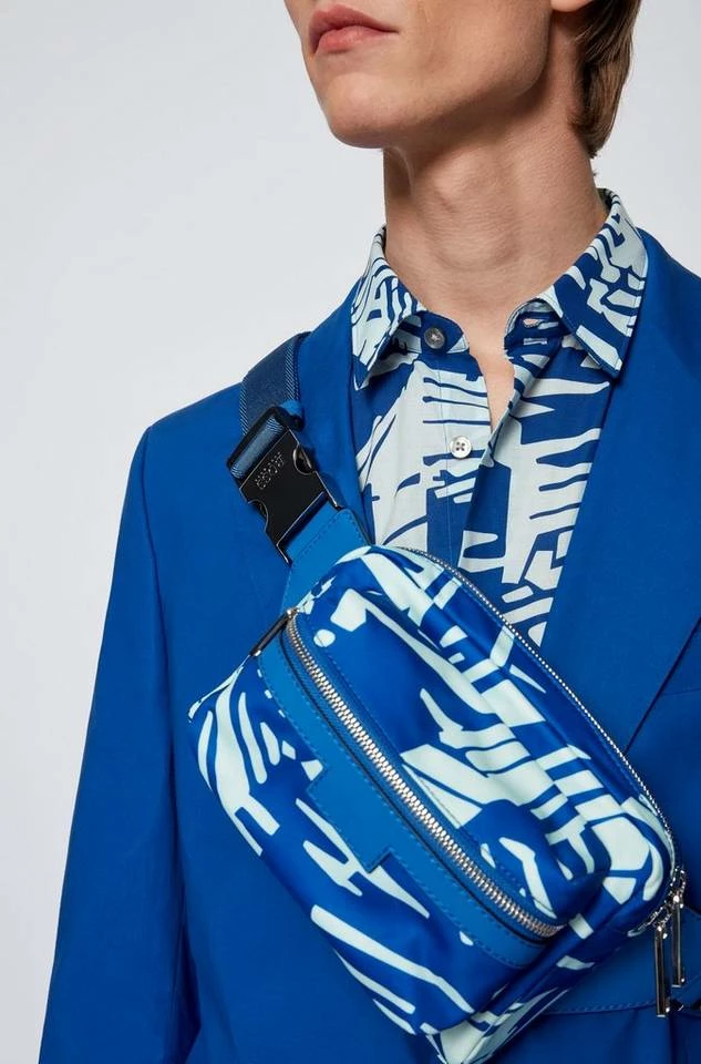 Zeitgemäße BOSS Gürteltasche, die um die Taille gelegt oder quer um den Oberkörper getragen werden kann. Das sportive Herren-Accessoire ist aus leichtem Nylon mit tonalen Leder-Akzenten gefertigt. Ein saisonales Print-Motiv zeichnet den Style aus. Die Metall-Details sind mit BOSS Logos versehen, ein weiteres Logo befindet sich auf der Vordertasche. Die Maße: 14,0 x 21,0 x 6,0 Zentimeter. Gürteltasche von BOSS Menswear